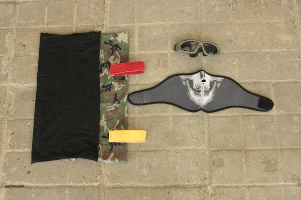 Varusteet Punottu verkkosuojalasi, neopreeninen alakasvosuojus, tuubihuivi ja käsivarsinauha (joukkueen värillä) |
